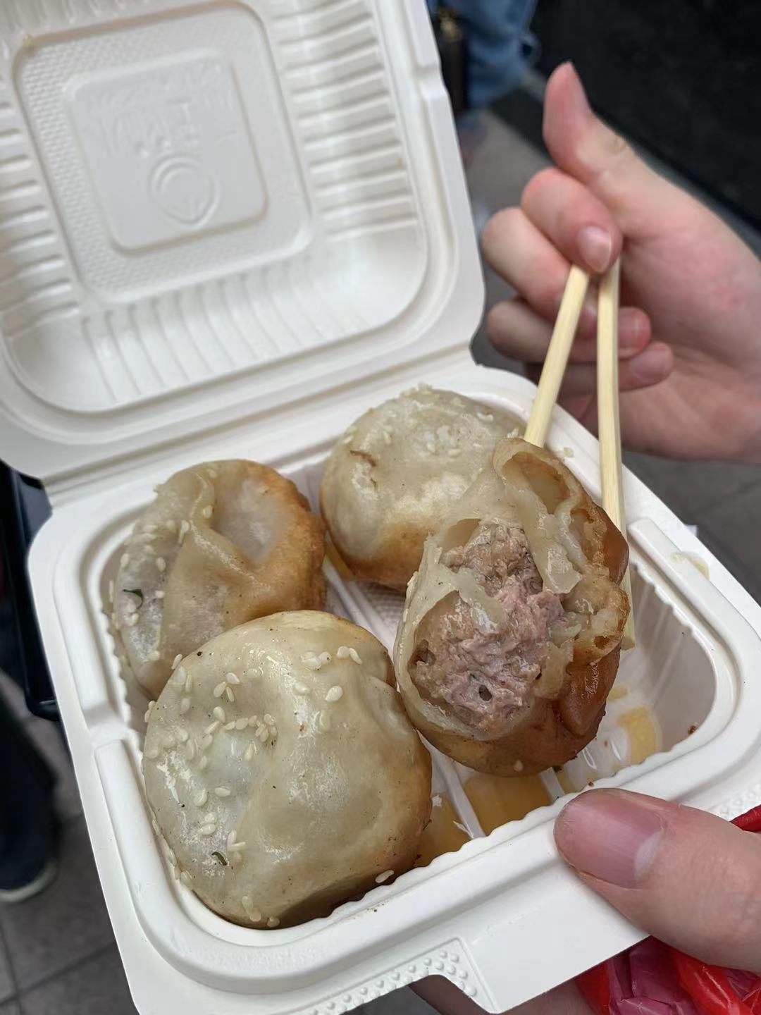 外皮金黄,有芝麻,很香,肉馅很嫩,味道还可以